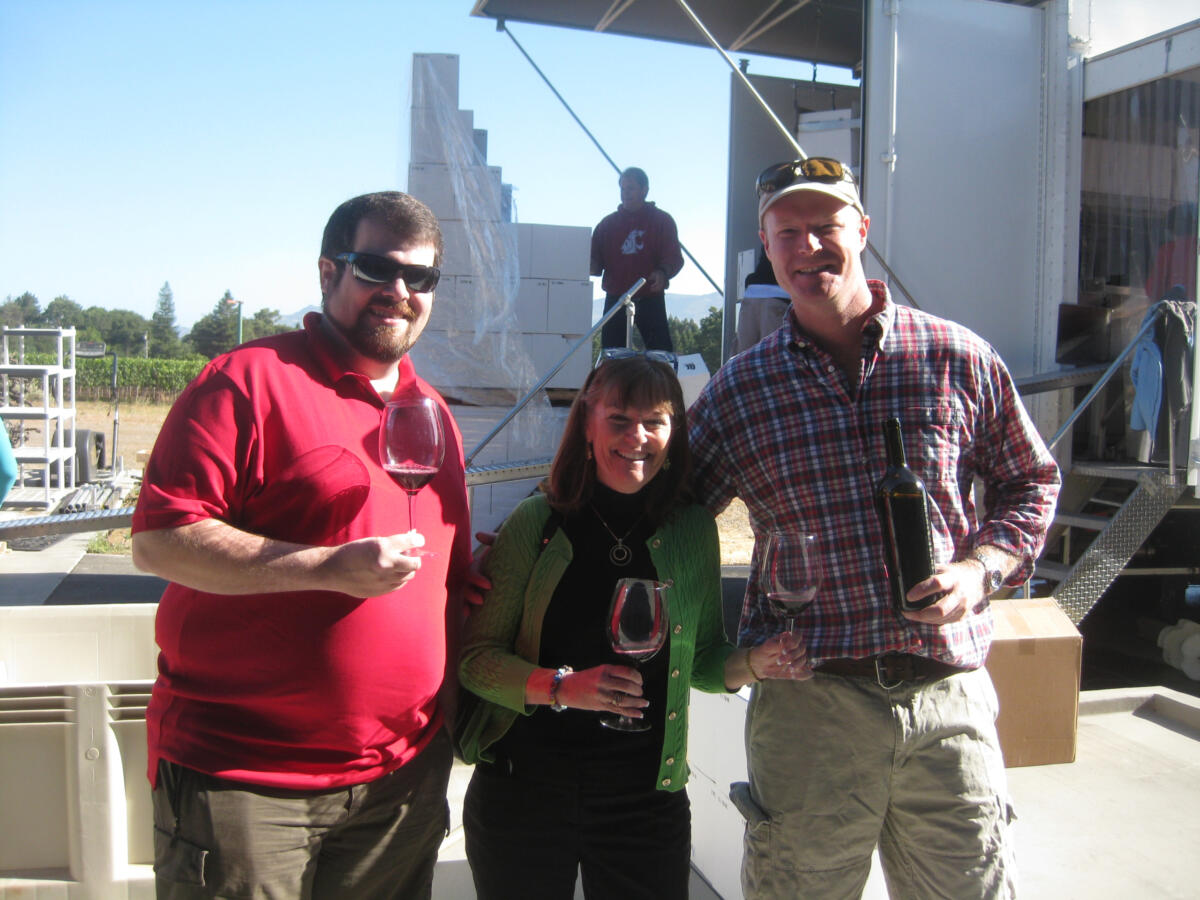 In June 2014, we participated in the bottling of Entrepreneur Wines first production from the ElevenEleven Winery in Napa. Winemaker Kirk Venge was on hand to greet the mobile bottling team and set up the corking of our 2012 Diamond Mountain Cabernet. Friend, Hamish Hughes, visiting from Australia, was also on hand to witness the fun…and then over to Venge Vineyards for a taste of Kirk’s own wine.